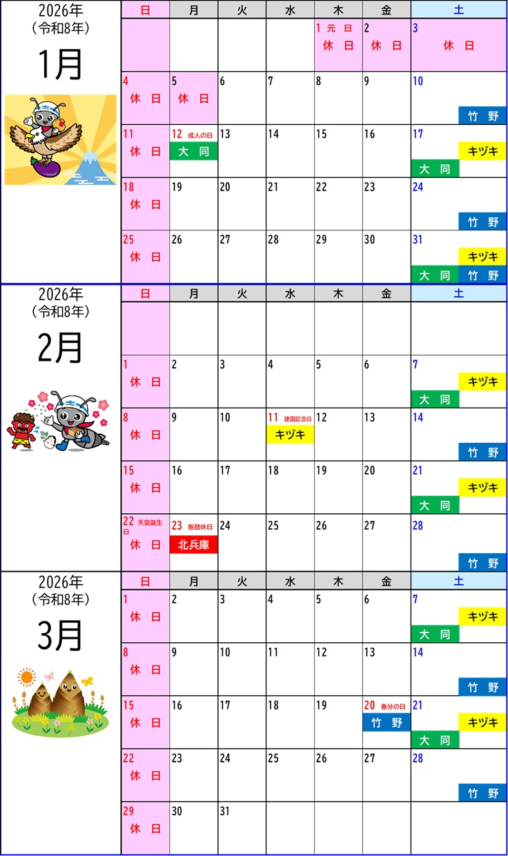 休日カレンダー 豊岡生コンクリート協同組合